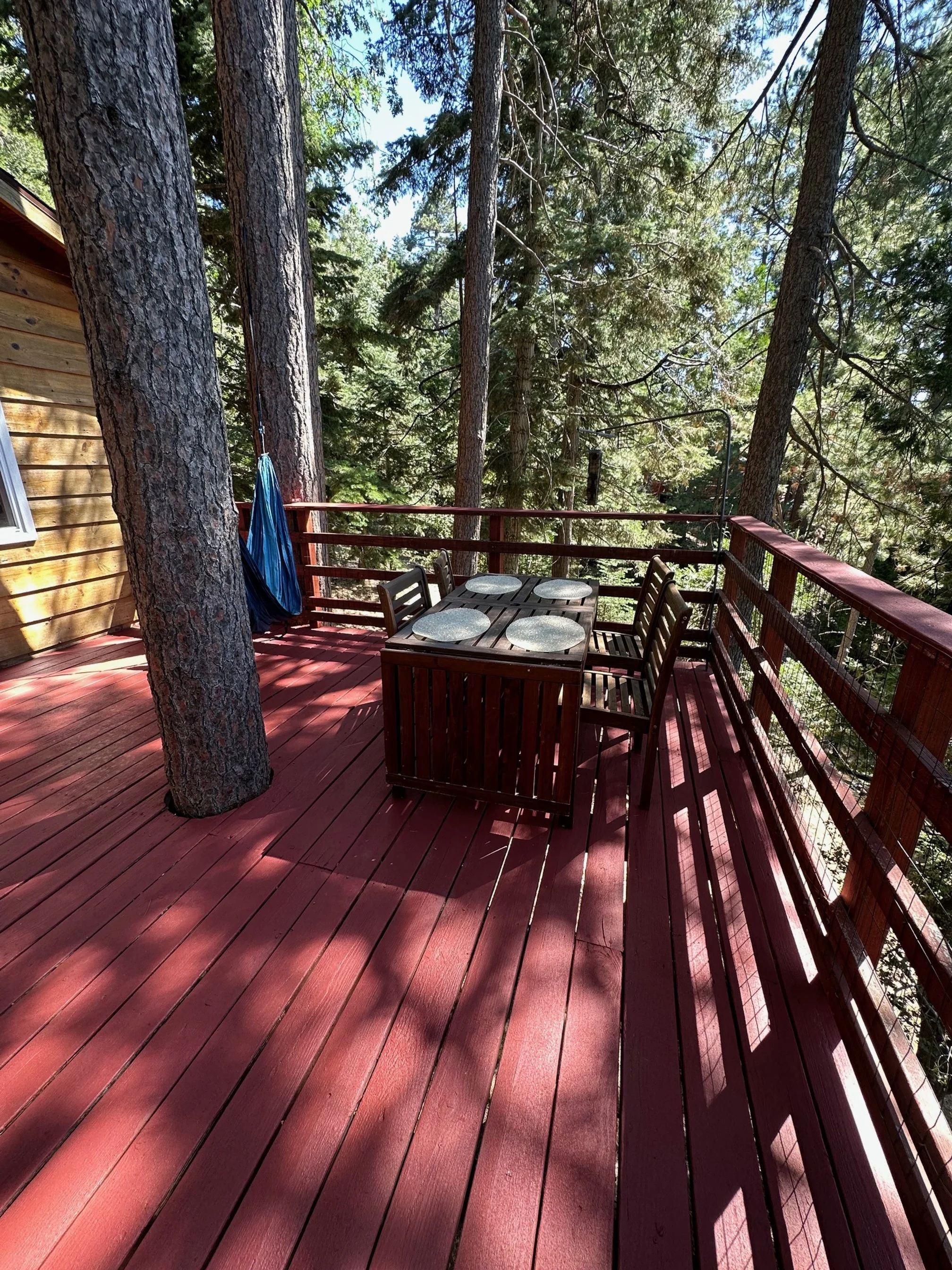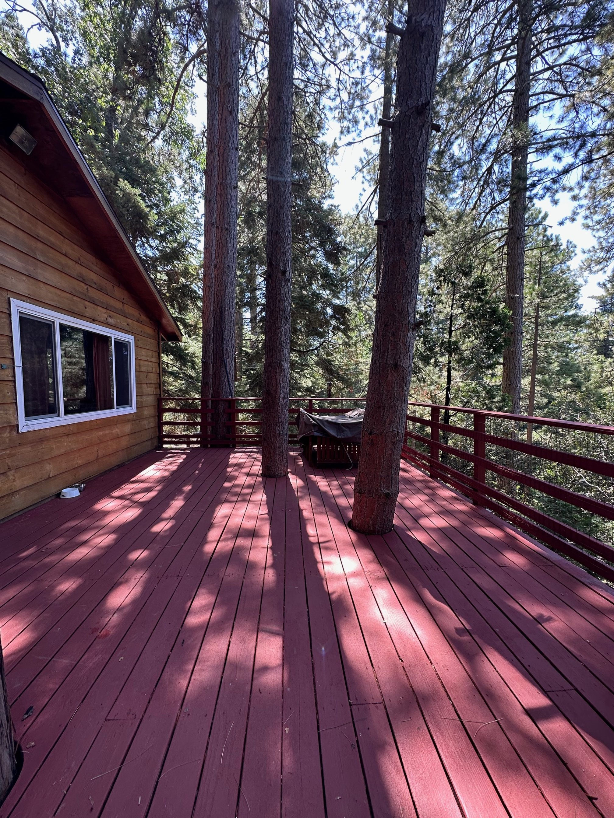 When choosing a paint or stain for your Cabin Deck it’s important to choose the best top quality materials. Due to natures tough climates and the damage deck wood can take, you want to insure you choose a product that will provide a strong and durable top coat. This will help insure that you will not need to repaint it for years to come. Doing your homework will help avoid headaches.